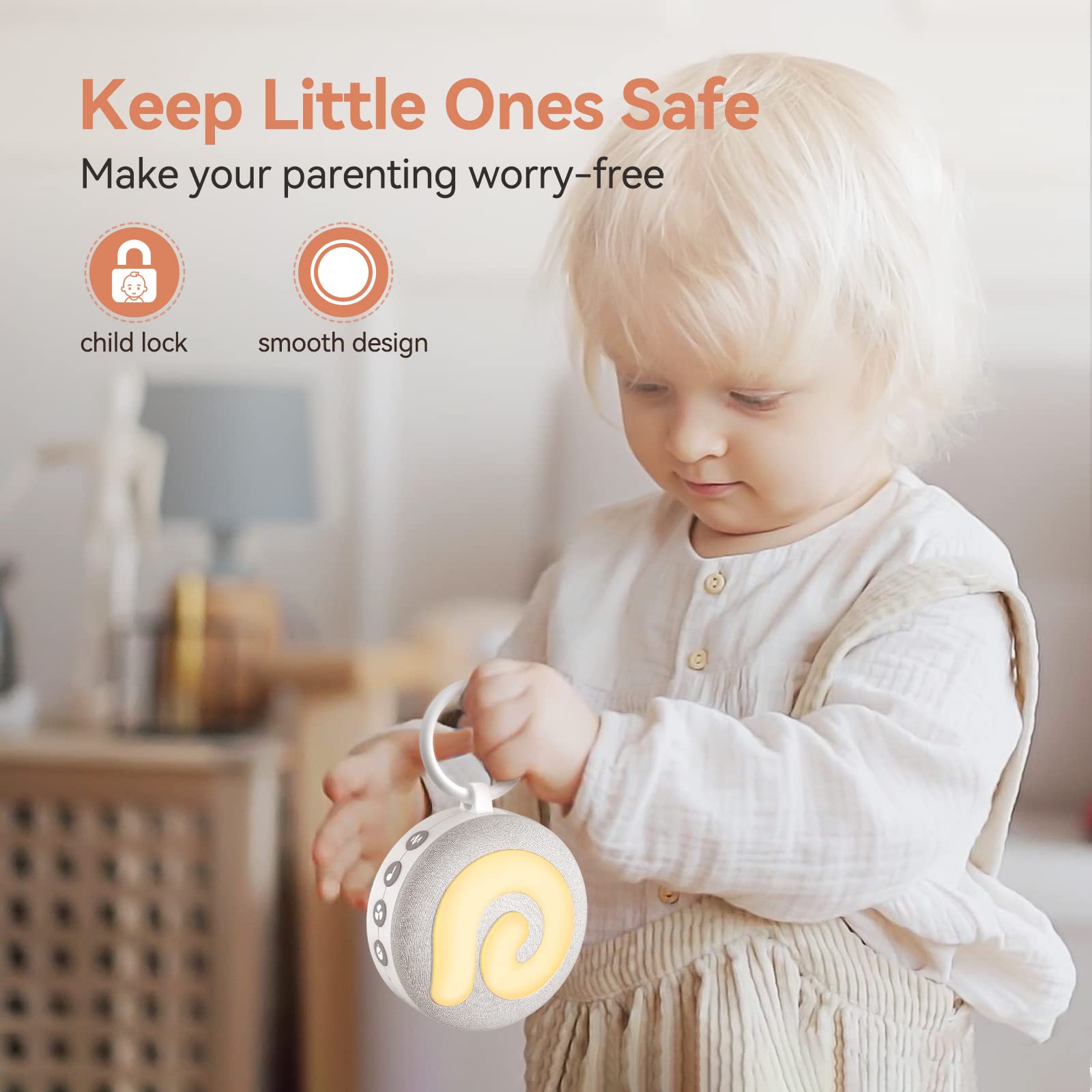 Das dimmbare Nachtlicht schafft Geborgenheit und ermöglicht nächtliches Füttern ohne grelles Licht. Tragbar, leicht (nur 140 g) und mit praktischem Timer (30/60/90 Minuten) sowie Kindersicherung ausgestattet – perfekt für unterwegs oder zuhause.