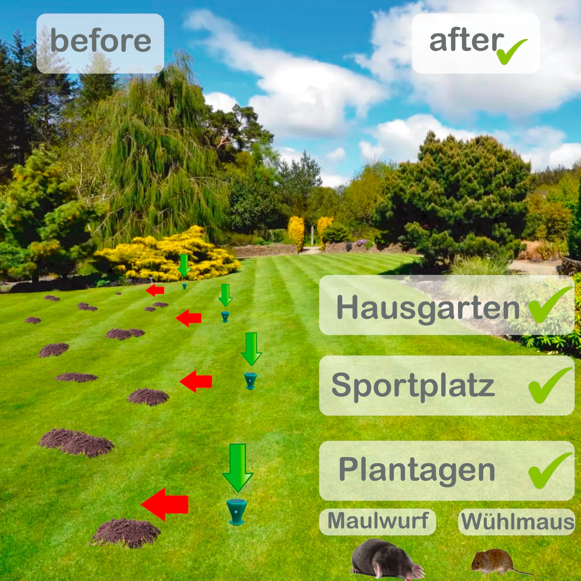 Der EdenGardens MOLE Repeller (2er Pack) vertreibt Maulwürfe und Wühlmäuse zuverlässig - ohne Gift, ohne Chemie. Ideal für Garten, Beet oder Rasen - entwickelt für Golfplätze, jetzt auch für deinen Garten verfügbar!
